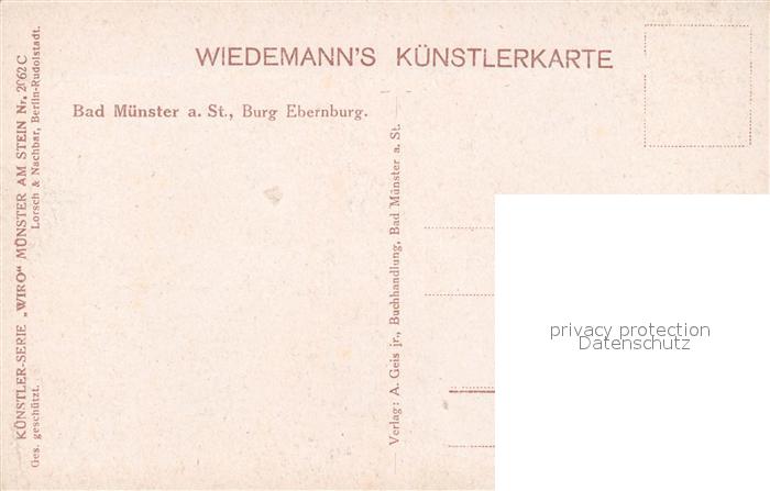 Bad Muenster Stein Ebernburg Burg Ebernburg Kuenstlerserie Wiro Nr. 2062C
