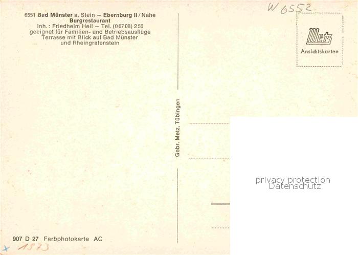 72903457 Bad Muenster Stein Ebernburg Burgrestaurant Terrasse mit Panoramablick Rheingrafenstein postalisch nicht gelaufen Erhaltung siehe scans [FriedD77] KatCode: 11110007133007
