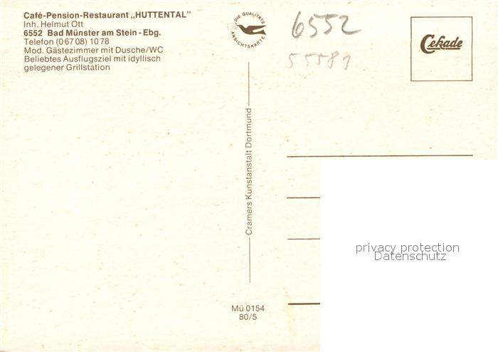 73569838 Bad Muenster Stein Ebernburg Cafe Pension Restaurant Huttental Gastraeume postalisch nicht gelaufen Erhaltung siehe scans [WerneD78] KatCode: 11110007133007