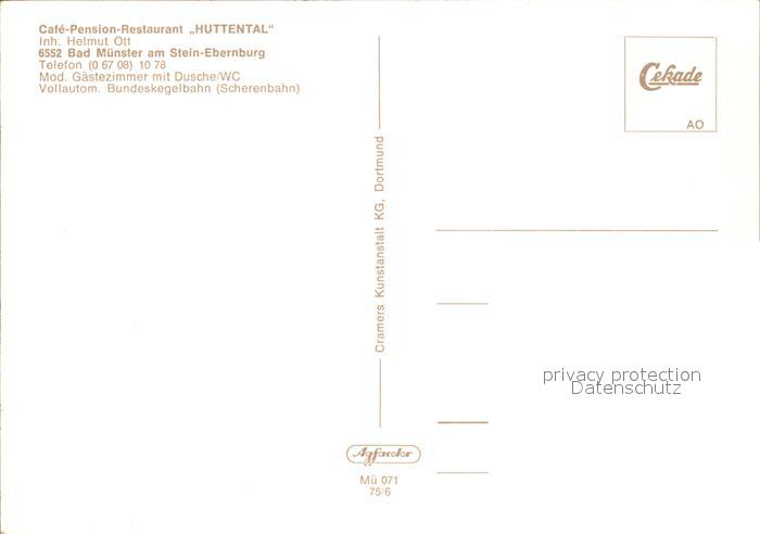 72429120 Bad Muenster Stein Ebernburg Cafe Restaurant Pension Huttental postalisch nicht gelaufen Erhaltung siehe scans KatCode: 11110007133007