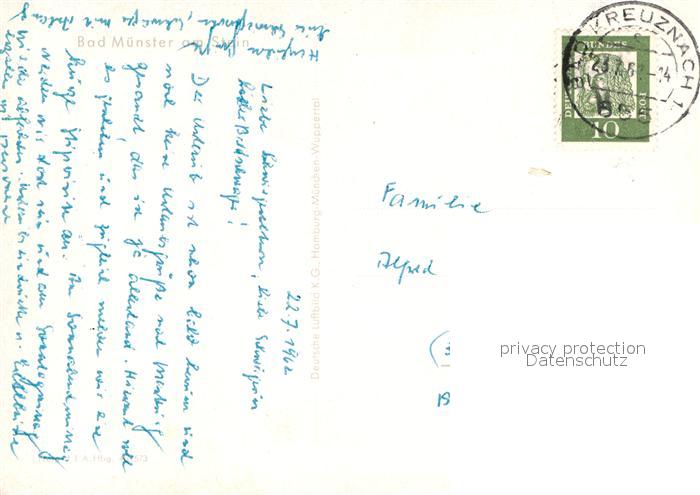 72947244 alte Postkarte Bad Muenster Stein Ebernburg Fliegeraufnahme postalisch gelaufen Erhaltung siehe scans [LiesaD40] KatCode: 11110007133007