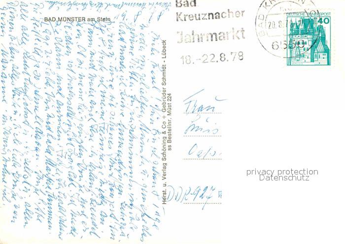 72849854 alte Postkarte Bad Muenster Stein Ebernburg Fliegeraufnahme postalisch gelaufen Erhaltung siehe scans [NatalD47] KatCode: 11110007133007