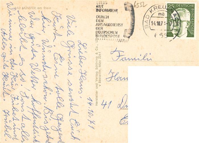 73897585 alte Postkarte Bad Muenster Stein Ebernburg Fliegeraufnahme postalisch gelaufen Erhaltung siehe scans [WerneD78] KatCode: 11110007133007