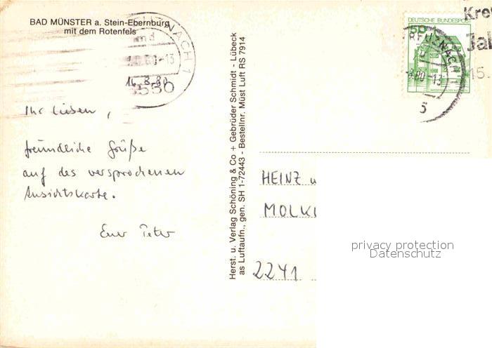 72752708 alte Postkarte Bad Muenster Stein Ebernburg Fliegeraufnahme mit Rotenfels postalisch gelaufen Erhaltung siehe scans [LiesaD40] KatCode: 11110007133007