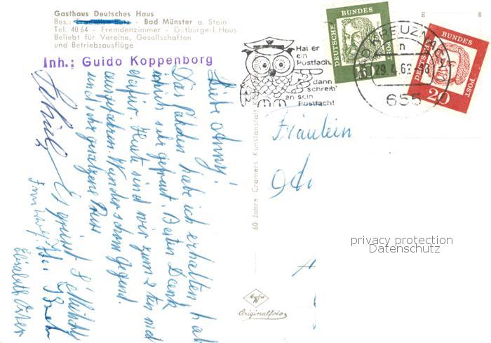 73835165 alte Postkarte Bad Muenster Stein Ebernburg Gasthaus Deutsches Haus Gastraeume Kurpark postalisch gelaufen Erhaltung siehe scans [WerneD78] KatCode: 11110007133007