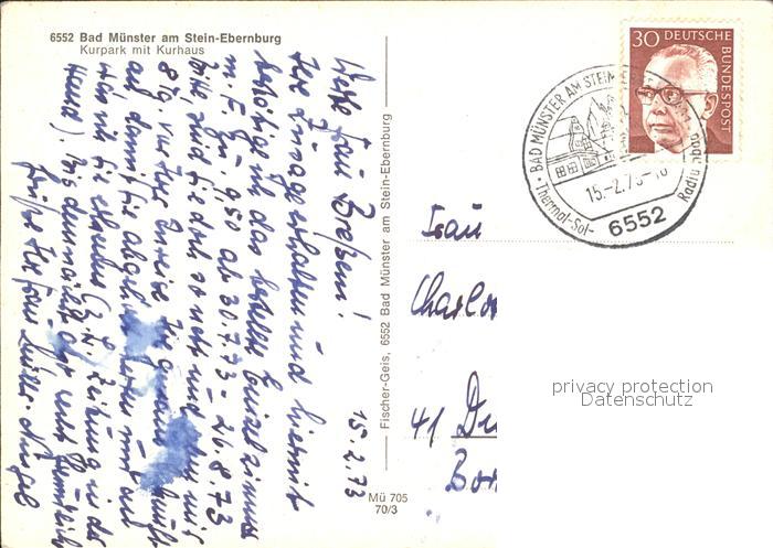 72168405 alte Postkarte Bad Muenster Stein Ebernburg Kurpark mit Kurhaus postalisch gelaufen Erhaltung siehe scans KatCode: 11110007133007
