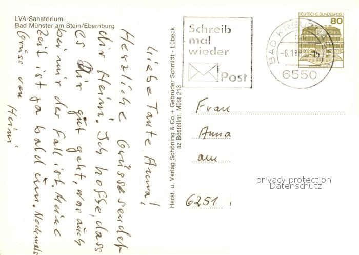 73129408 alte Postkarte Bad Muenster Stein Ebernburg LVA-Sanatorium postalisch gelaufen Erhaltung siehe scans [PaolaD17] KatCode: 11110007133007