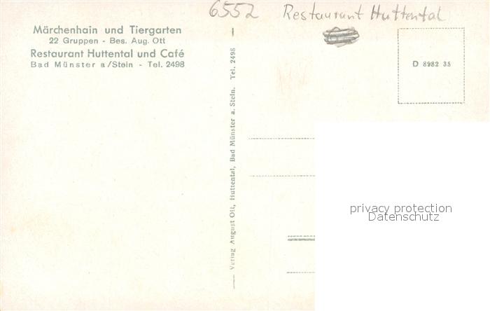 73694581 Bad Muenster Stein Ebernburg Maerchenhain Restaurant Huttental postalisch nicht gelaufen Erhaltung siehe scans [FriedD77] KatCode: 11110007133007