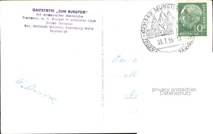 72089379 alte Postkarte Bad Muenster Stein Ebernburg mit Rheingrafenstein postalisch gelaufen KatCode: 11110007133007
