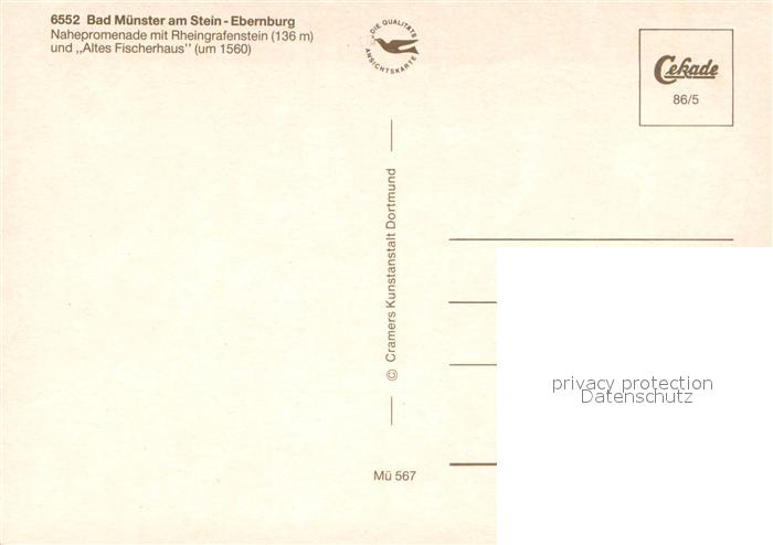 73649009 Bad Muenster Stein Ebernburg Nahepromenade mit Rheingrafenstein Altes Fischerhaus postalisch nicht gelaufen Erhaltung siehe scans [FriedD77] KatCode: 11110007133007