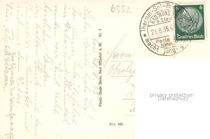 73694560 alte Postkarte Bad Muenster Stein Ebernburg Panorama Nahetal Blick vom Gansweg postalisch gelaufen Erhaltung siehe scans [FriedD77] KatCode: 11110007133007
