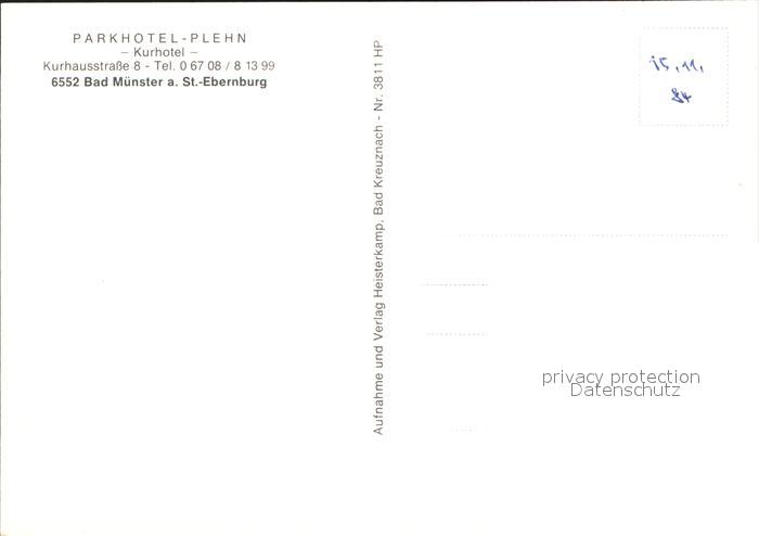 72312498 Bad Muenster Stein Ebernburg Parkhotel Plehn Kurhotel postalisch nicht gelaufen Erhaltung siehe scans Alte Ansichtskarte Postkarte Wern Katcode 11110007133007