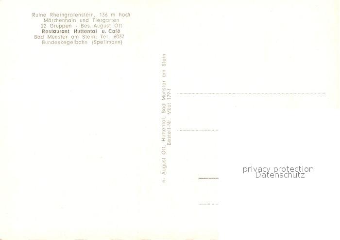 73145028 Bad Muenster Stein Ebernburg Ruine Rheingrafenstein Felsen Stadtpanorama Kurpark Fontaene Restaurant Huttental Cafe Nahe Wehr postalisch nicht gelaufen Erhaltung siehe scans [FriedD77] KatCode: 11110007133007