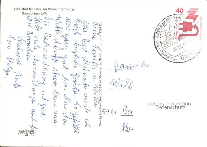 72000745 alte Postkarte Bad Muenster Stein Ebernburg Sanatorium LVA postalisch gelaufen Erhaltung siehe scans KatCode: 11110007133007