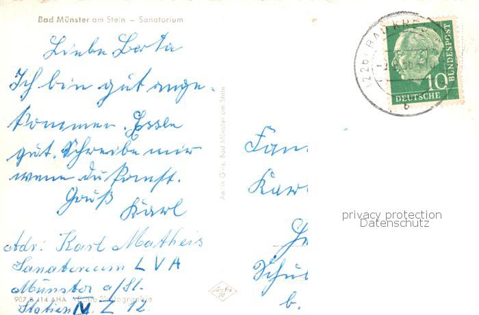 73797609 alte Postkarte Bad Muenster Stein Ebernburg Sanatorium postalisch gelaufen Erhaltung siehe scans [WerneD78] KatCode: 11110007133007
