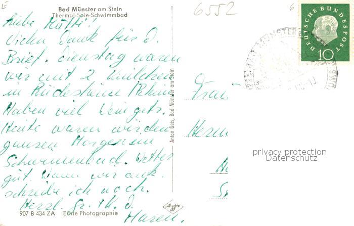 73141762 alte Postkarte Bad Muenster Stein Ebernburg Thermal-Sole-Schwimmbad postalisch gelaufen Erhaltung siehe scans [NatalD47] KatCode: 11110007133007