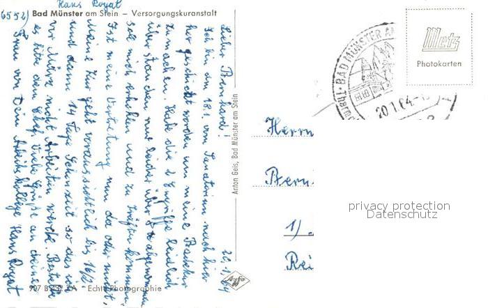 43362387 alte Postkarte Bad Muenster Stein Ebernburg Versorgungskuranstalt postalisch gelaufen Erhaltung siehe scans [WerneD78] KatCode: 11110007133007