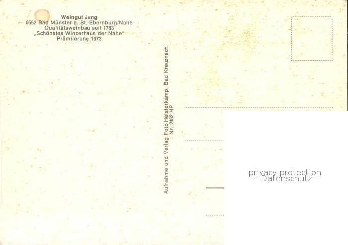 72567693 Bad Muenster Stein Ebernburg Weingut Jung postalisch nicht gelaufen Erhaltung siehe scans [KathaD79] KatCode: 11110007133007