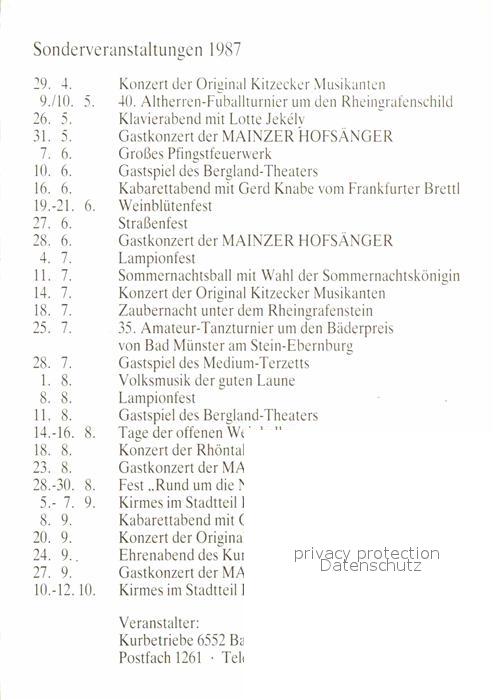72777744 Bad Muenster Stein Ebernburg Zaubernacht unter dem Rheingrafenstein postalisch nicht gelaufen Werbekarte (keine Postkarte) Erhaltung siehe scans [LiesaD40] KatCode: 11110007133007