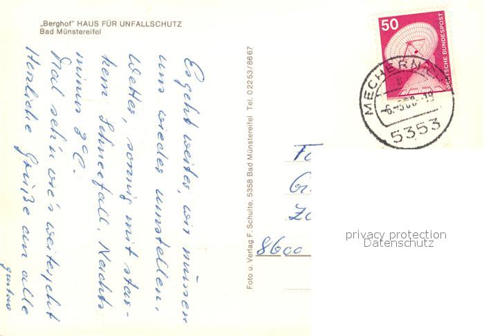 73121230 alte Postkarte Bad Muenstereifel Berghof Haus fuer Unfallschutz postalisch gelaufen Erhaltung siehe scans [LiesaD40] KatCode: 11110005366004