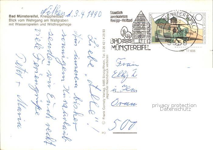 72579008 alte Postkarte Bad Muenstereifel Blick vom Wehrgang am Wallgraben postalisch gelaufen Erhaltung siehe scans [LiesaD40] KatCode: 11110005366004