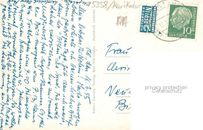 73689817 alte Postkarte Bad Muenstereifel Die Kneippkur in der Karikatur postalisch gelaufen Erhaltung siehe scans [FriedD77] KatCode: 11110005366004