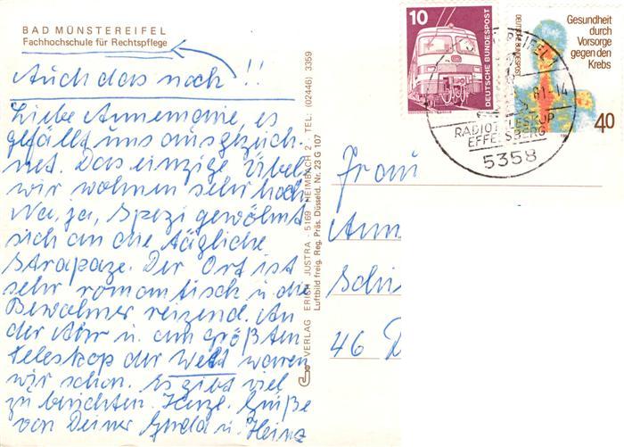 73894877 alte Postkarte Bad Muenstereifel Fachhochschule fuer Rechtspflege postalisch gelaufen Erhaltung siehe scans [FriedD77] KatCode: 11110005366004