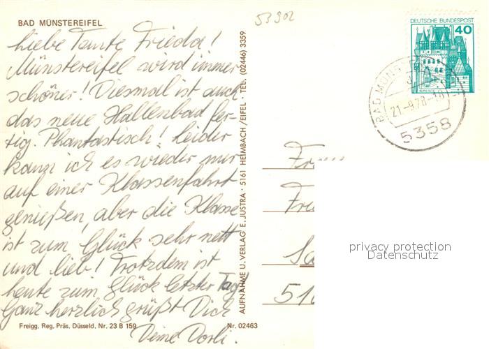 72951710 alte Postkarte Bad Muenstereifel Fliegeraufnahme postalisch gelaufen Erhaltung siehe scans [NatalD47] KatCode: 11110005366004