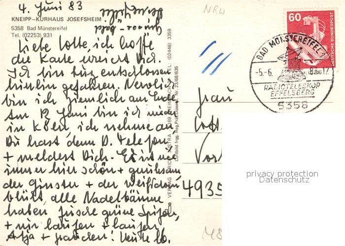 72934127 alte Postkarte Bad Muenstereifel Fliegeraufnahme Kneipp-Kurhaus Josefsheim postalisch gelaufen Erhaltung siehe scans [LiesaD40] KatCode: 11110005366004