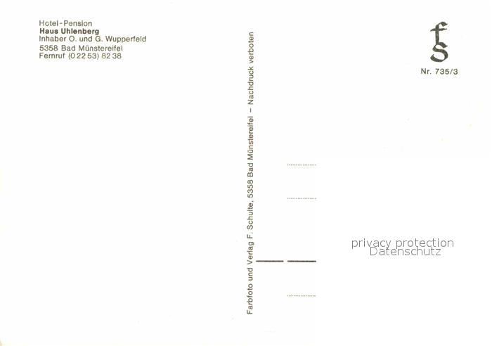 72668392 Bad Muenstereifel Hotel Haus Uhlenberg postalisch nicht gelaufen Erhaltung siehe scans [AndreD76] KatCode: 11110005366004