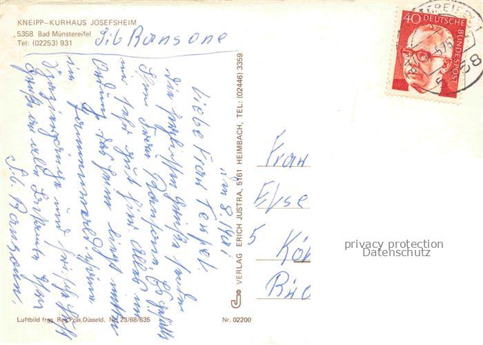 74025765 alte Postkarte Bad Muenstereifel Kneipp-Kurhaus Josefsheim postalisch gelaufen Fliegeraufnahme Erhaltung siehe scans [FriedD77] KatCode: 11110005366004