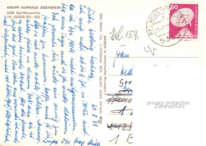 72755549 alte Postkarte Bad Muenstereifel Kneipp Kurhaus Josefsheim Fliegeraufnahme postalisch gelaufen Erhaltung siehe scans [WerneD78] KatCode: 11110005366004