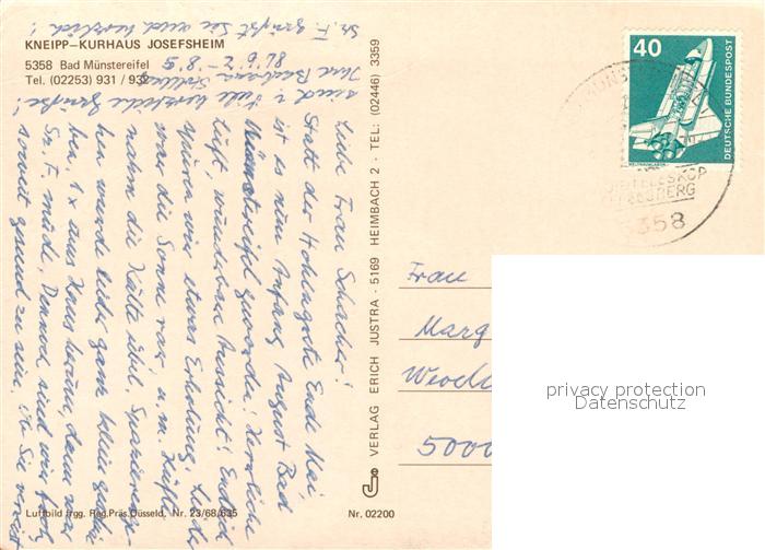 73721637 alte Postkarte Bad Muenstereifel Kneipp Kurhaus Josefsheim Fliegeraufnahme postalisch gelaufen Erhaltung siehe scans [WerneD78] KatCode: 11110005366004