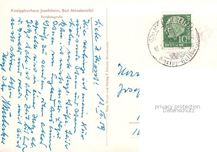 73840989 alte Postkarte Bad Muenstereifel Kneippkurhaus Josefsheim postalisch gelaufen Erhaltung siehe scans [WerneD78] KatCode: 11110005366004