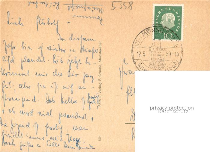 73690167 alte Postkarte Bad Muenstereifel Kreuz auf dem Radberg Burg Schule Josefsheim Rathaus Kirche Radioteleskop Kurhaus Freibad Jugendherberge postalisch gelaufen Erhaltung siehe scans [FriedD77] KatCode: 11110005366004