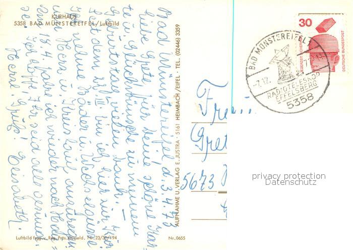 73724755 alte Postkarte Bad Muenstereifel Kurhaus Fliegeraufnahme postalisch gelaufen Erhaltung siehe scans [WerneD78] KatCode: 11110005366004