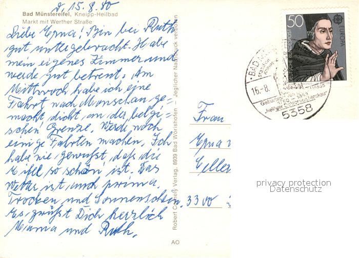 73106488 alte Postkarte Bad Muenstereifel Markt Werther Strasse postalisch gelaufen Erhaltung siehe scans [KathaD81] KatCode: 11110005366004