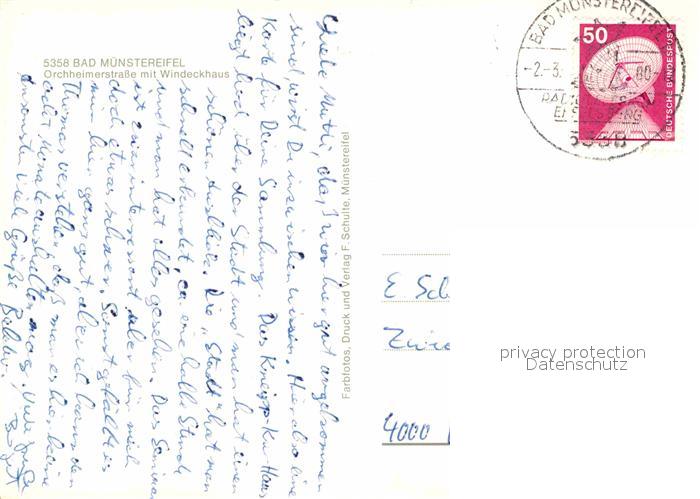72904607 alte Postkarte Bad Muenstereifel Orchheimerstrasse mit Windeckhaus postalisch gelaufen Erhaltung siehe scans [FriedD77] KatCode: 11110005366004