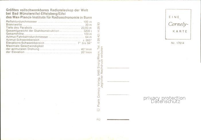 71928840 Bad Muenstereifel Radioteleskop Effelsberg Elevationsantrieb postalisch nicht gelaufen Erhaltung siehe scans KatCode: 11110005366004