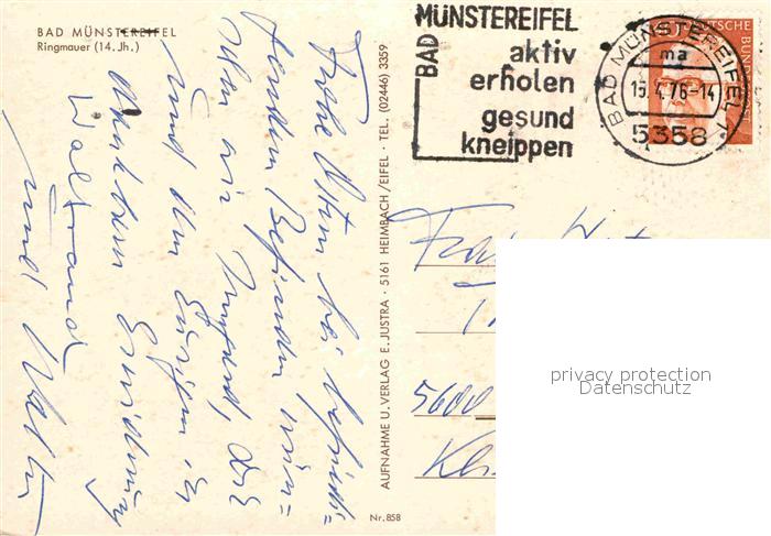 72680731 alte Postkarte Bad Muenstereifel Ringmauer postalisch gelaufen Erhaltung siehe scans [WerneD78] KatCode: 11110005366004
