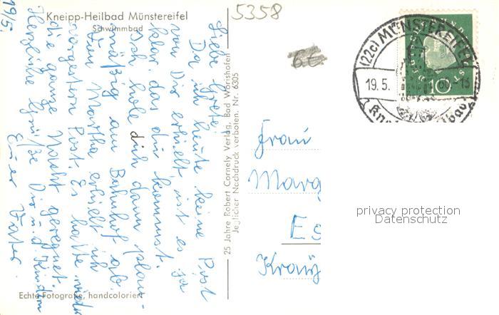 33701340 alte Postkarte Bad Muenstereifel Schwimmbad postalisch gelaufen Erhaltung siehe scans [WerneD78] KatCode: 11110005366004