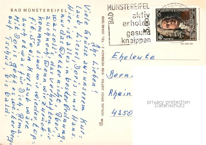 73048223 alte Postkarte Bad Muenstereifel Stadtmauer Tuerme Panorama postalisch gelaufen Erhaltung siehe scans [WerneD78] KatCode: 11110005366004