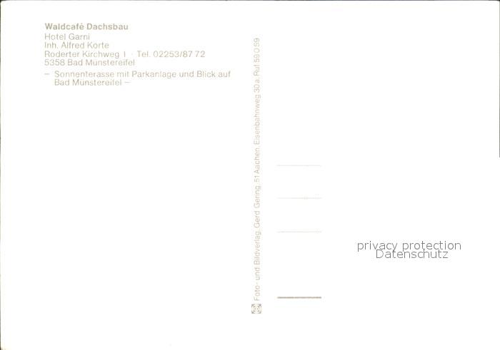 72579009 Bad Muenstereifel WaldCafe Dachsbau postalisch nicht gelaufen Erhaltung siehe scans [LiesaD40] KatCode: 11110005366004