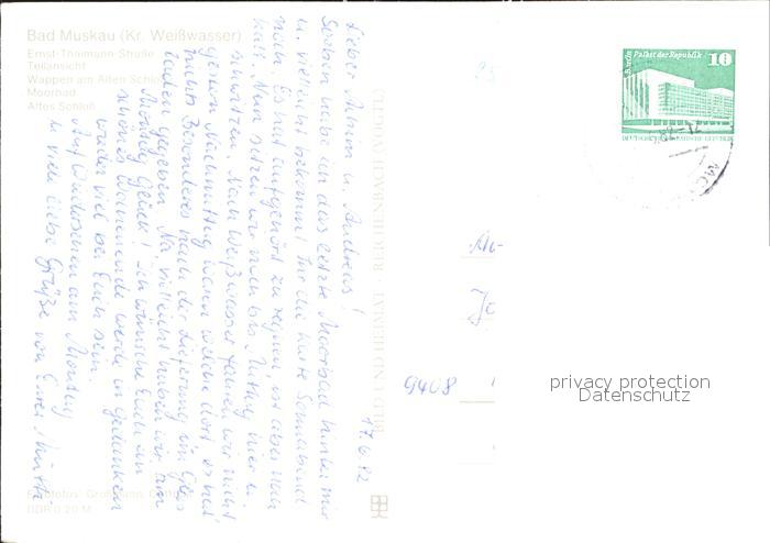 72382734 alte Postkarte Bad Muskau Oberlausitz Ernst-Thaelmann-Strasse Wappen Alte Schloss postalisch gelaufen Erhaltung siehe scans KatCode: 11110014284010