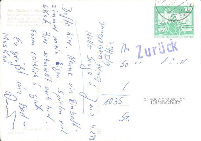 72331371 alte Postkarte Bad Muskau Oberlausitz Moorbad Schlossruine Ernst-Thaelmann-Strasse postalisch gelaufen Erhaltung siehe scans KatCode: 11110014284010