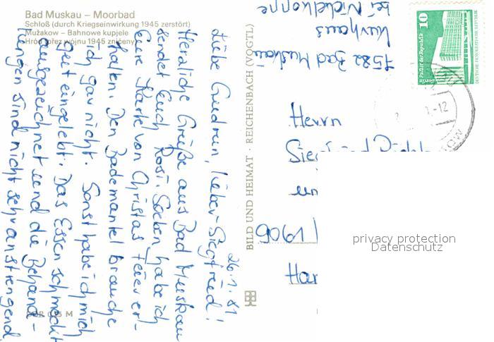 72704417 alte Postkarte Bad Muskau Oberlausitz Schloss postalisch gelaufen Erhaltung siehe scans [FriedD77] KatCode: 11110014284010