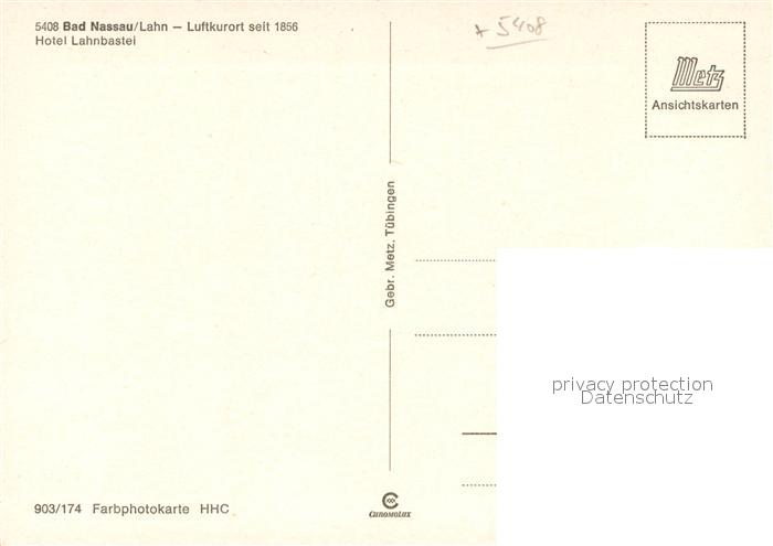 73688178 Bad Nassau Hotel Lahnbastei Lahnpartie postalisch nicht gelaufen Erhaltung siehe scans [WerneD78] KatCode: 11110007141091