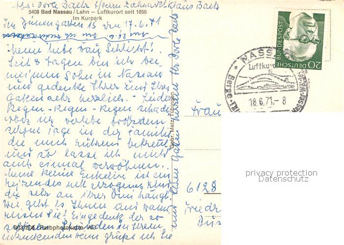 72999710 alte Postkarte Bad Nassau Im Kurpark postalisch gelaufen Erhaltung siehe scans [AndreD76] KatCode: 11110007141091
