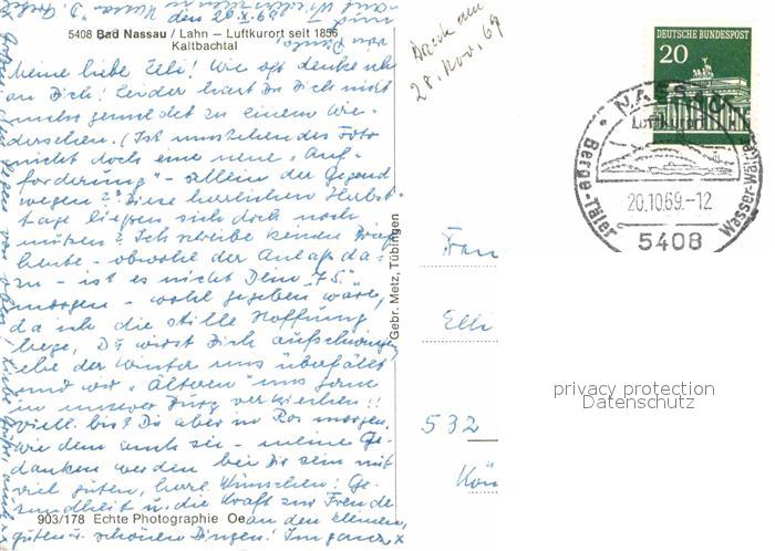 72901090 alte Postkarte Bad Nassau Kaltbachtal postalisch gelaufen Erhaltung siehe scans [PaolaD17] KatCode: 11110007141091