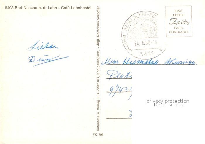 73314547 alte Postkarte Bad Nassau Lahn Cafe Lahnbastei postalisch gelaufen Erhaltung siehe scans [LiesaD40] KatCode: 11110007141091